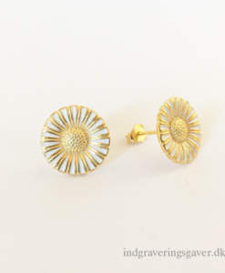 18 karat guldbelagt marguerit øreringe med hvid emalje
