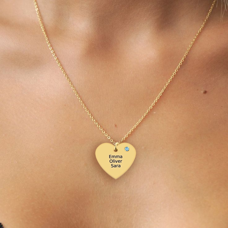 18 karat gold plated heart necklace, available with or without personal engraving (up to 3 names).