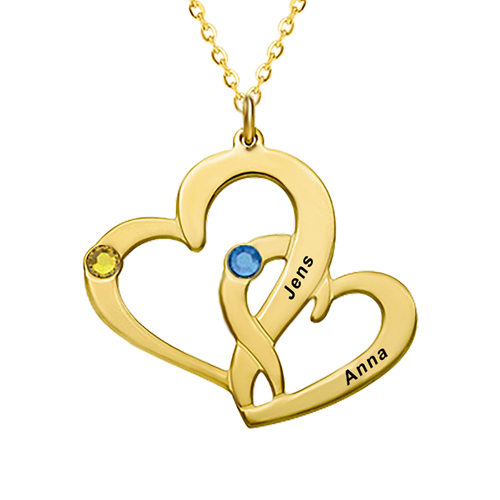 Indgraveret dobbelt-hjertehalskæde – Forgyldt 14 karat guld